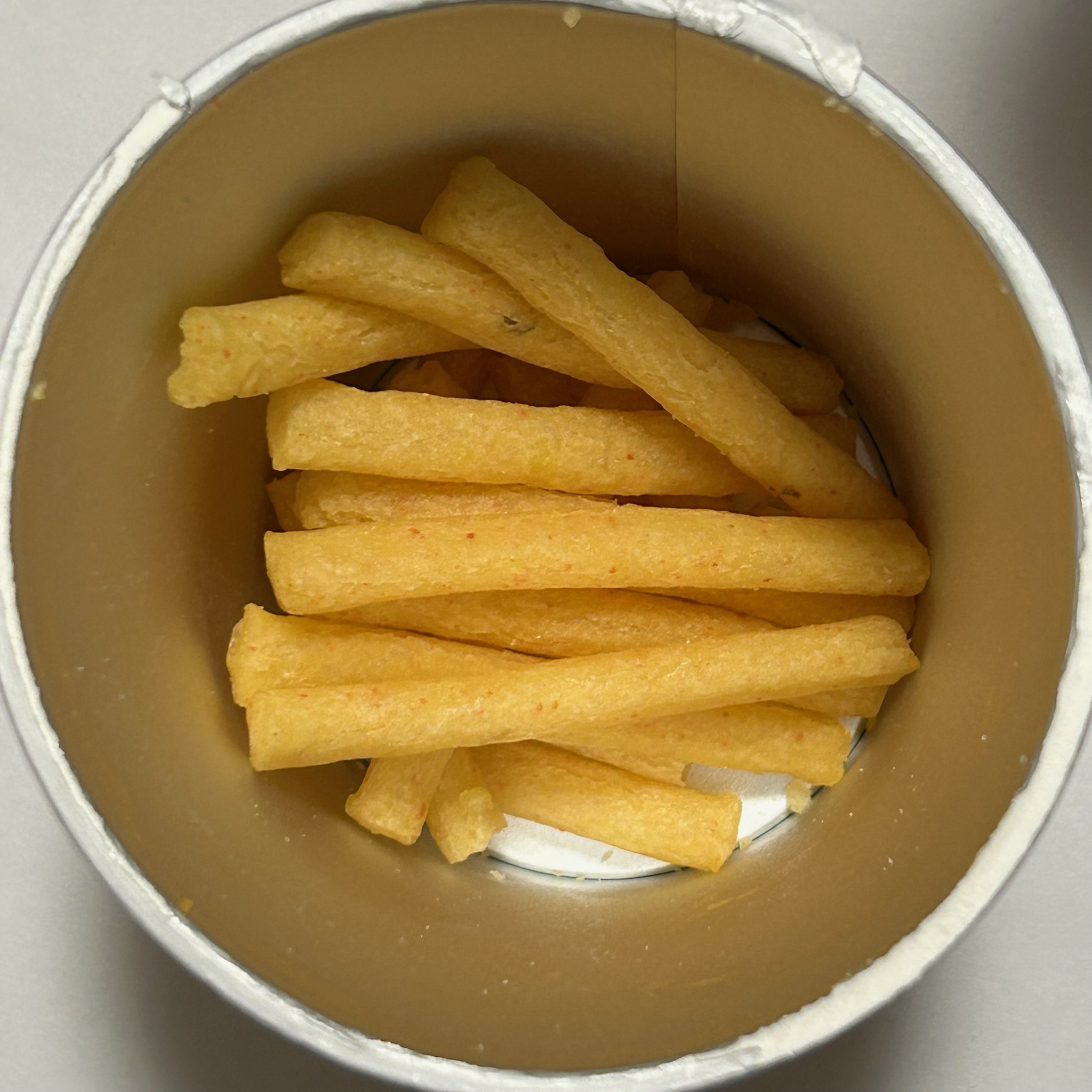 今回私たち二人は、「じゃがりこの初めてみた味だったので、試してみることにしました」という新フレーバーへの好奇心から、このたらこバター味に出会いました。一人は「たらこバターって和洋折衷で面白そうな組み合わせ」と期待を膨らませ、もう一人は「じゃがりこの新味は外れが少ないから、これも美味しそう」という話になり、期間限定の特別なフレーバーを体験することにしました。